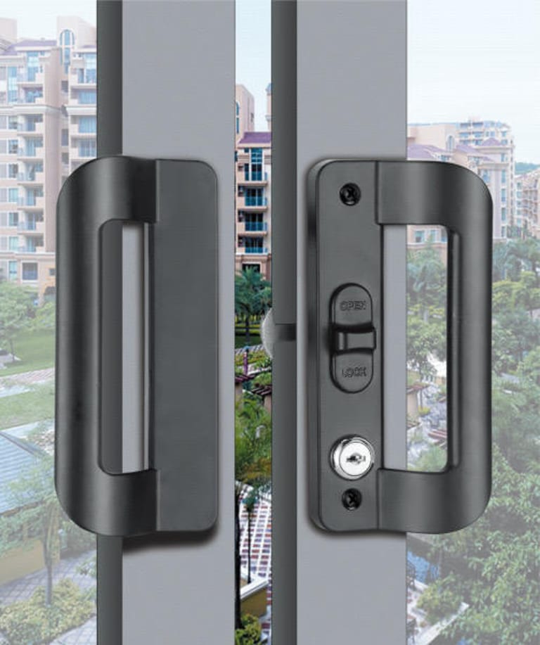 Sliding Door Pull Handle Black with Lock
